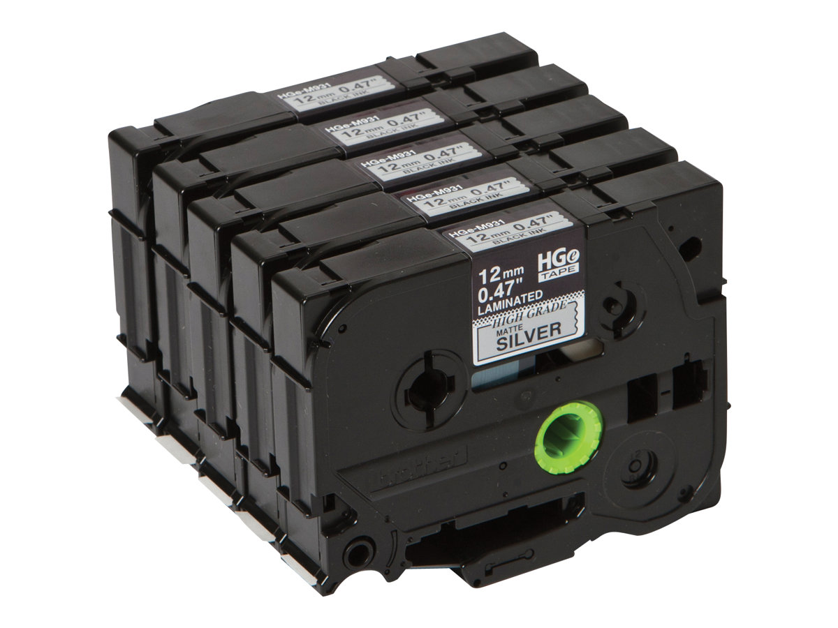 Brother HGM-931V5 - 5 pz - HGe - Nero su argento - Cina - Opaco - 5 anno/i - Nastro per etichettatura di alta qualità nero su argento Brother HGe-M931V5 – 12 mm di larghezza