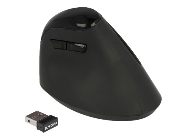 DeLOCK Ergonomic - Vertikale Maus - ergonomisch - Für Rechtshänder - optisch - 6 Tasten - kabellos - 2.4 GHz - kabelloser Empfänger (USB) - Schwarz - retail