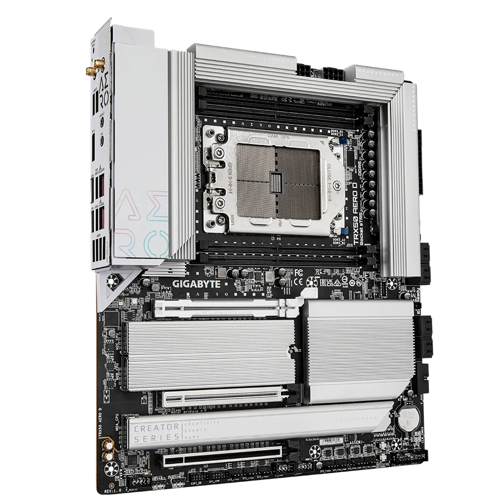 Gigabyte TRX50 AERO D Scheda madre - Supporta AMD Ryzen Threadripper 9000 Series CPUs - 16+8+4 Phases Digital VRM - up to 7800MHz DDR5 (OC) - 3xPCIe 5.0 + 1xPCIe 4.0 M.2 - Wi-Fi 7 - 10GbE LAN - USB4 - AMD - Socket sTR5 - AMD Ryzen Threadripper 1000 Series - 1 TB - - 10GbE LAN - Wi-Fi 7 - PCIe 5.0 - M.2 - 8 x SATA 6Gb/s - E-ATX - USB 3.2 - 256 Mbit - AMI UEFI BIOS - 30.5 x 26.4 cm