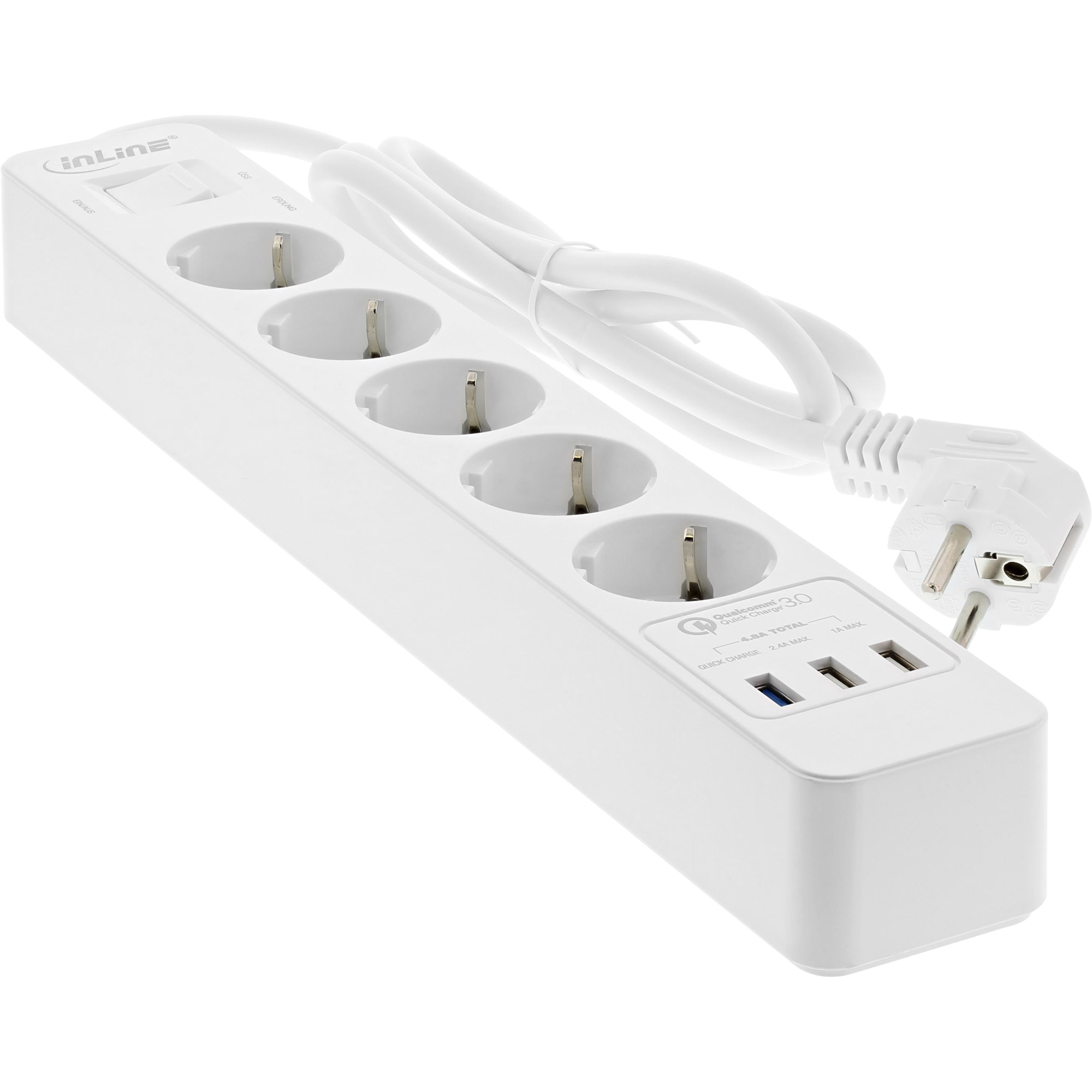 InLine - Steckdosenleiste - AC 220-250 V - 4000 Watt - Ausgangsanschlüsse: 5 (3 x USB Typ A, 5 x Strom Typ F) - 1.5 m - Deutschland - weiß