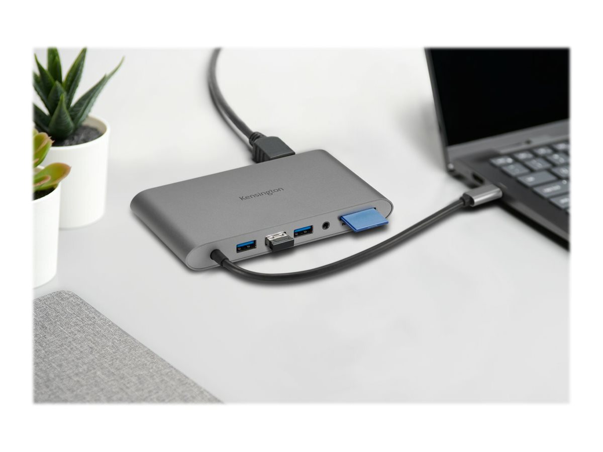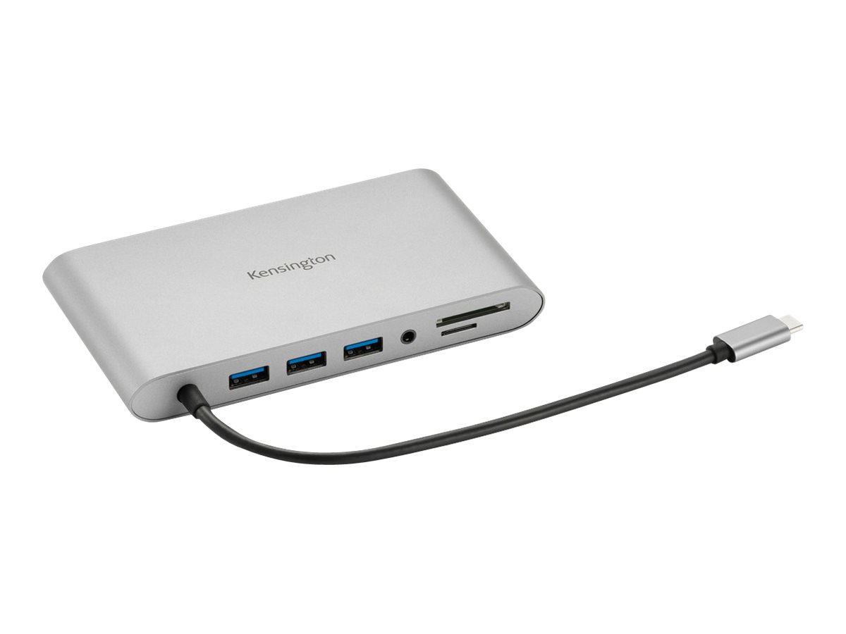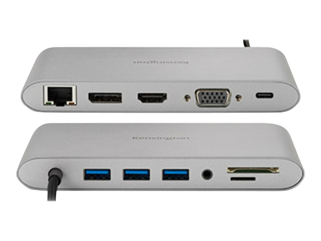 Kensington Docking station portatile senza driver doppia uscita video UH1440P USB-C 5 Gbps – DP/HDMI/VGA - Cablato - USB 3.2 Gen 1 (3.1 Gen 1) Type-C - 85 W - 3,5 mm - 100,1000 Mbit/s - Argento - La carica/docking station