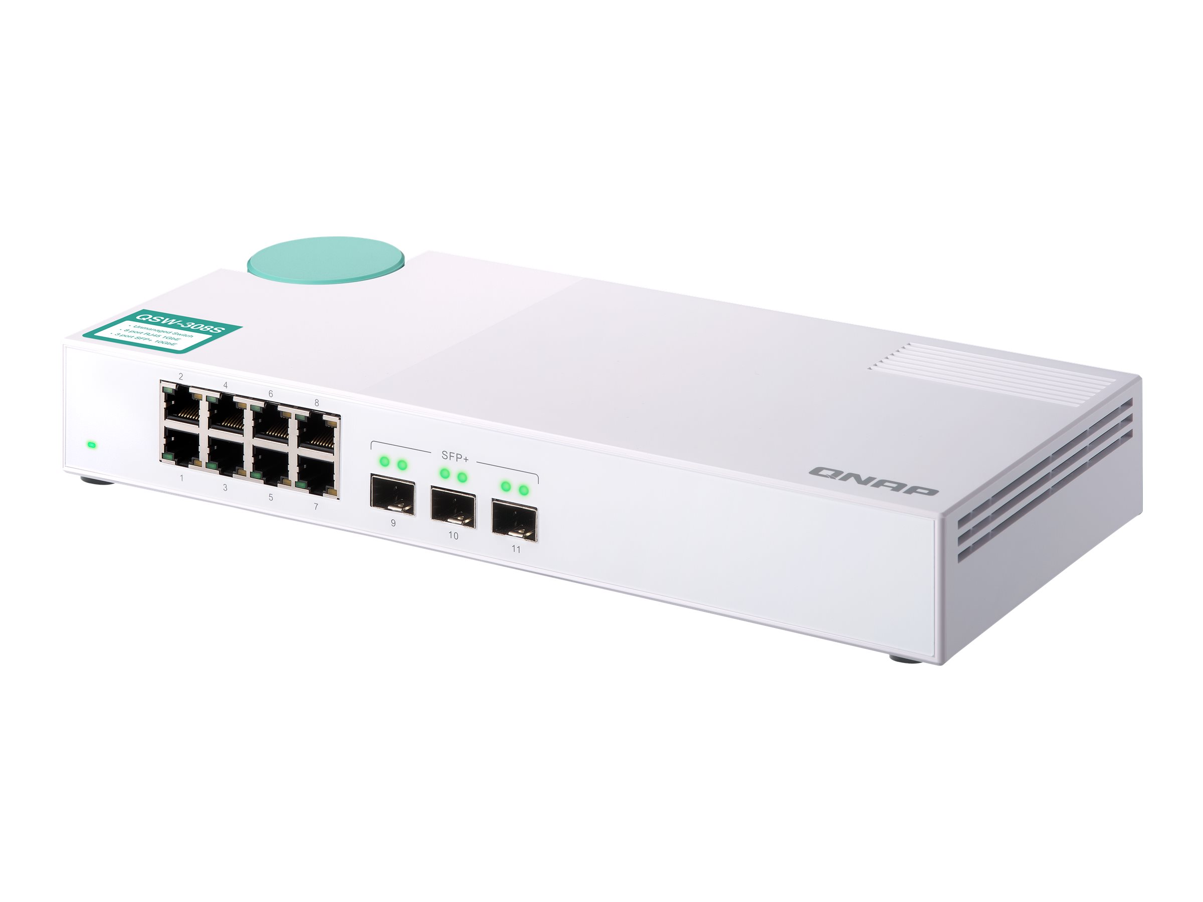 QNAP QSW-308S - Switch - unmanaged - 3 x 10 Gigabit SFP+ + 8 x 10/100/1000 - Desktop