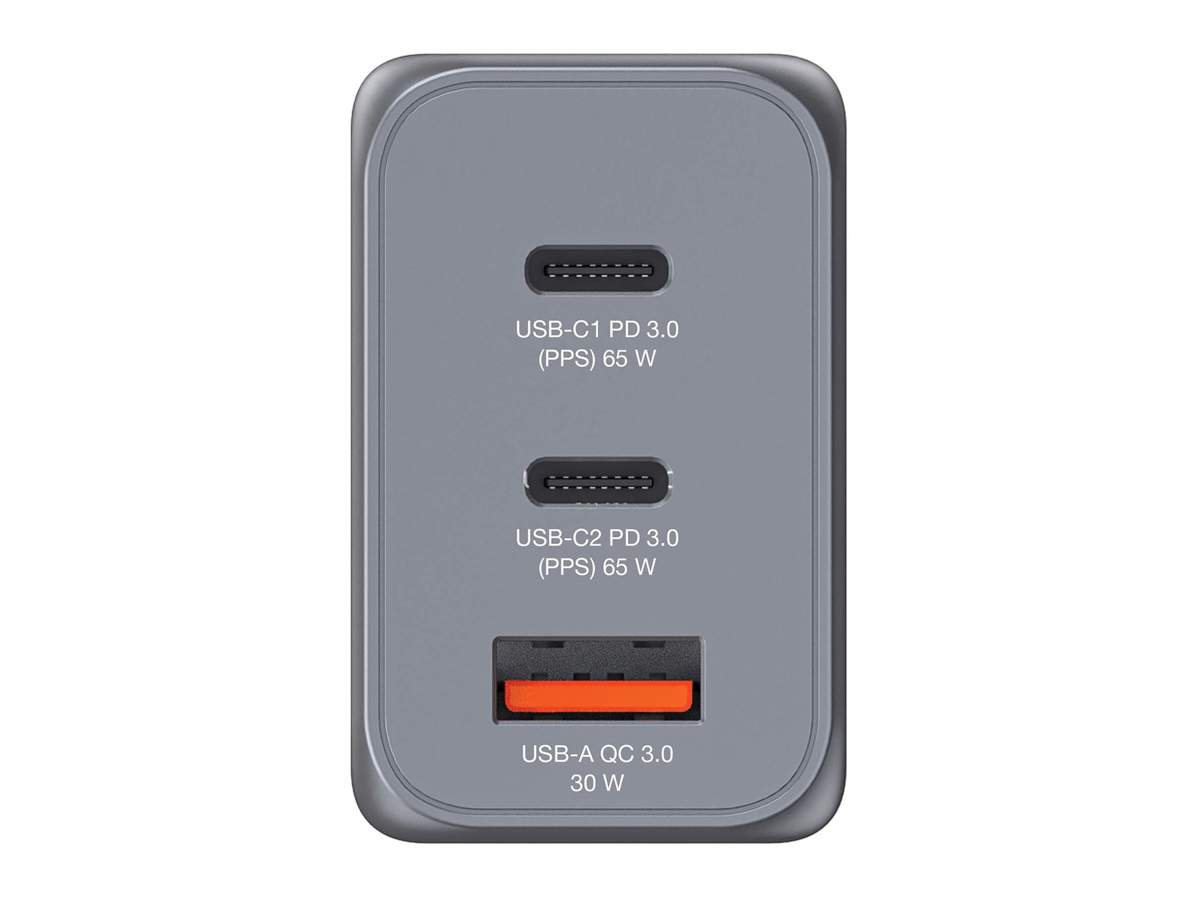 - GaN Wall Charger 65W with 2 x USB-C PD 65W / 1 x USB-A QC 3.0 (EU/UK/US)