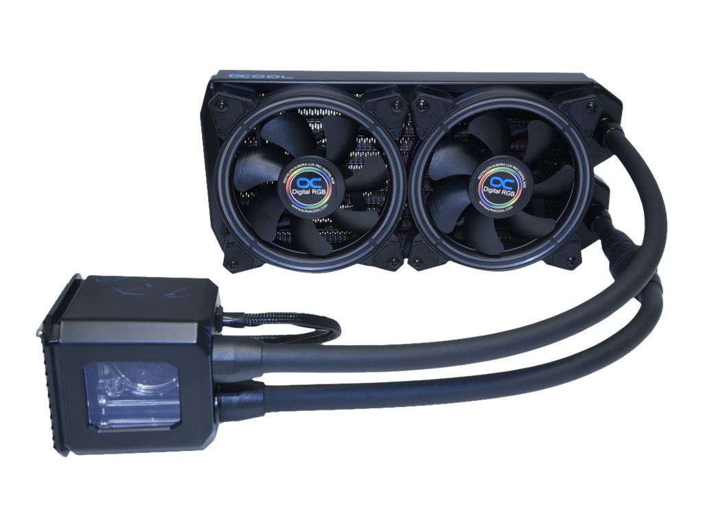 Alphacool Eisbaer Aurora 240 - Raffreddatore di liquidi tutto in uno - 12 cm - 10,49 m³/h - Nero - Digital RGB - Radiator size 2x120mm - Threads: 2x G1/4" - 2.0 mm H2O