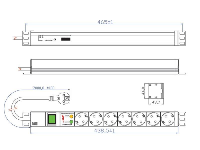 Bachmann 19" Steckdosenleiste 7xCEE7/3 UES Schalter Alu - Protezione contro le sovratensioni - Modulo rack