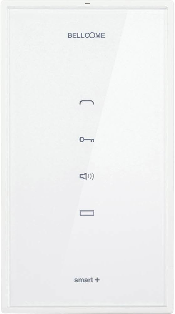 Unità interna audio BELLCOME Smart+, BIANCO, installazione a 4 fili, superficie rinforzata da 3 mm e pulsanti a sfioramento, funzione vivavoce intuitiva (senza ricevitore), montaggio su superficie, eleganza minimalista e senza tempo, resistenza ai graffi e agli urti - Caratteristiche principali: chiamata e risposta ; assoluzione; Monitoraggio audio e conversazione bidirezionale; Concessione dell'accesso durante il colloquio, la conversazione e il monitoraggio; Tasto AUX per automazioni aggiuntive.