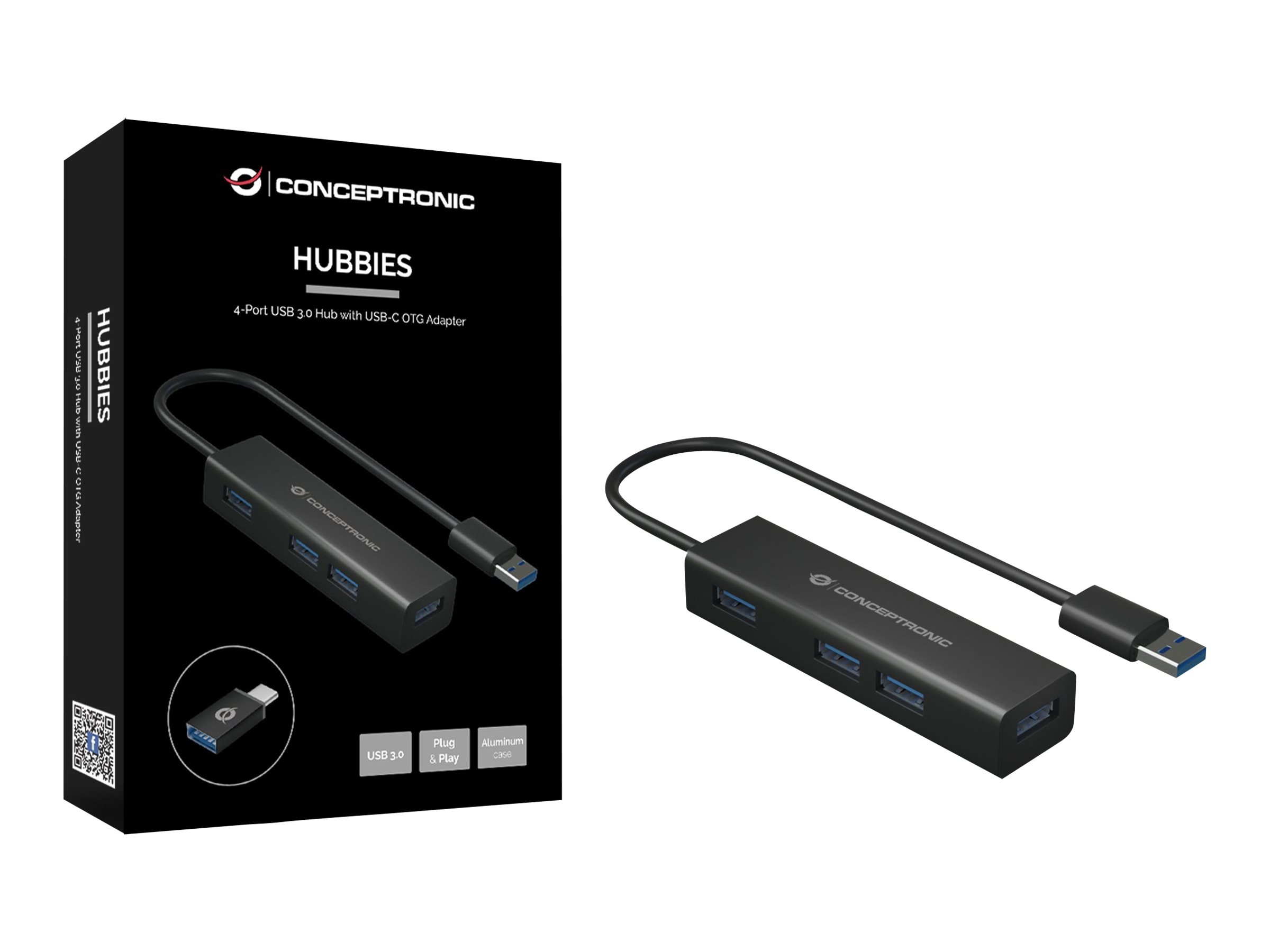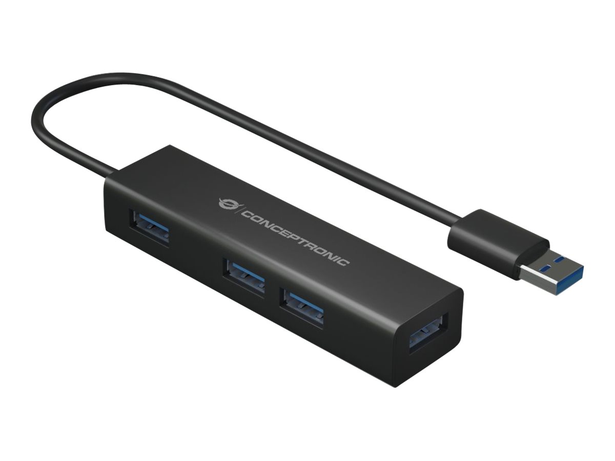 Conceptronic HUBBIES06B - USB 3.2 Gen 1 (3.1 Gen 1) Type-A - USB 3.2 Gen 1 (3.1 Gen 1) Type-A - 5000 Mbit/s - Nero - Cina - USB - 4x USB 3.0 Type-A - 87.5 x 23.4 x 16.5 mm - 42 g - Black
