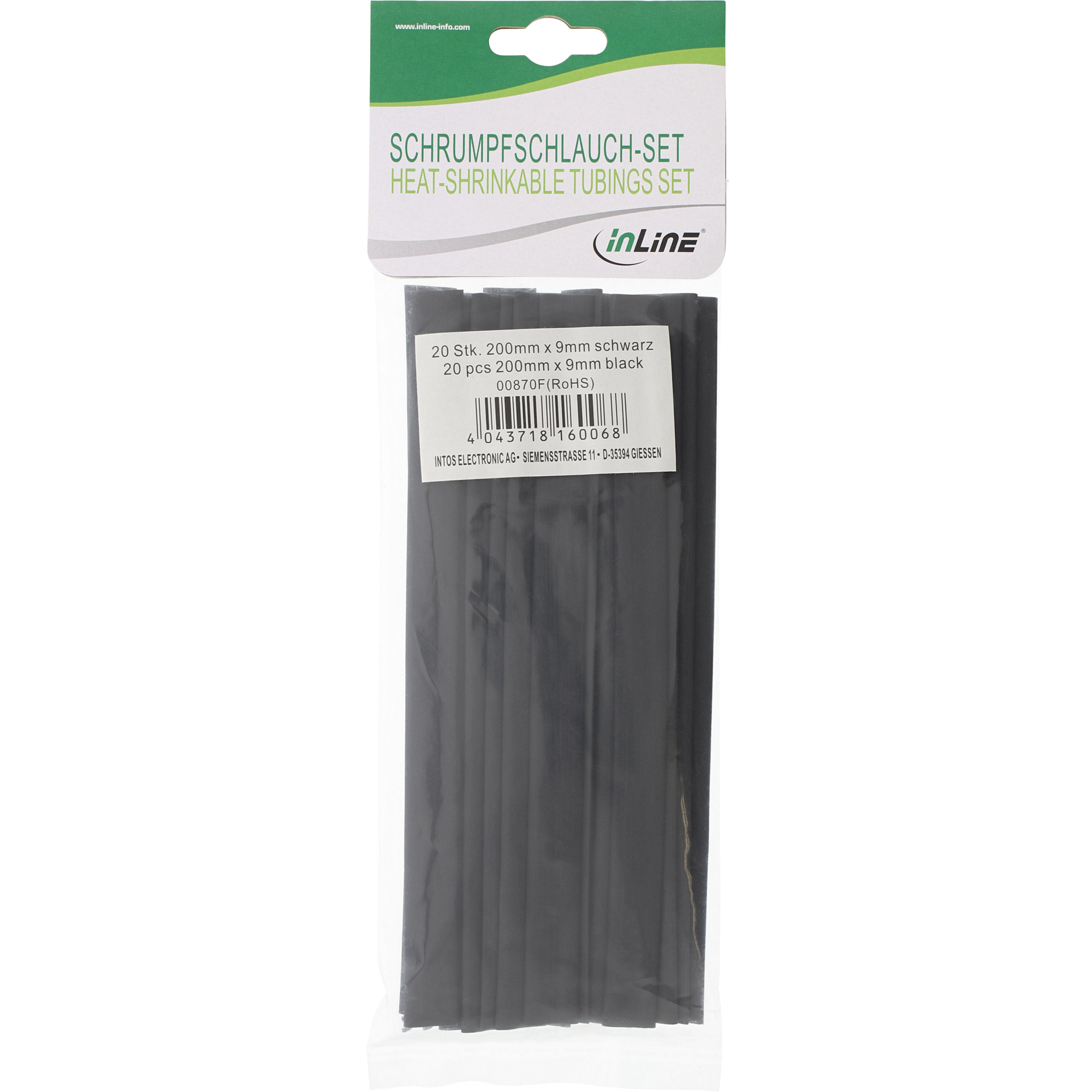 "InLine Guaina termo restringente 2:1 - 9mm-4,5mm - 200mm nero Conf.20pz"