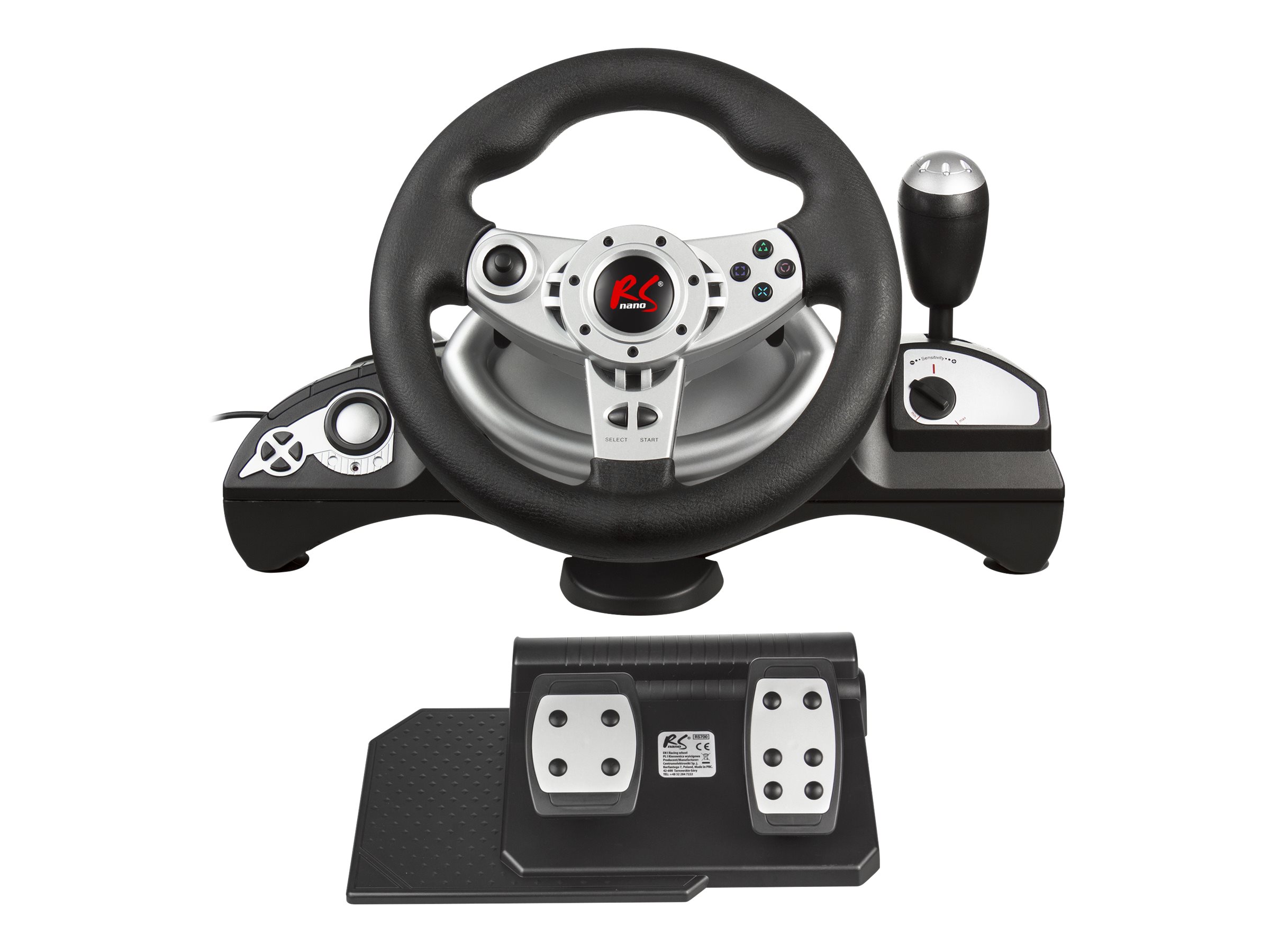 "MacLean NanoRS RS700 Gaming Controller Black Silver USB Steering wheel Analogue Digital - Volante"