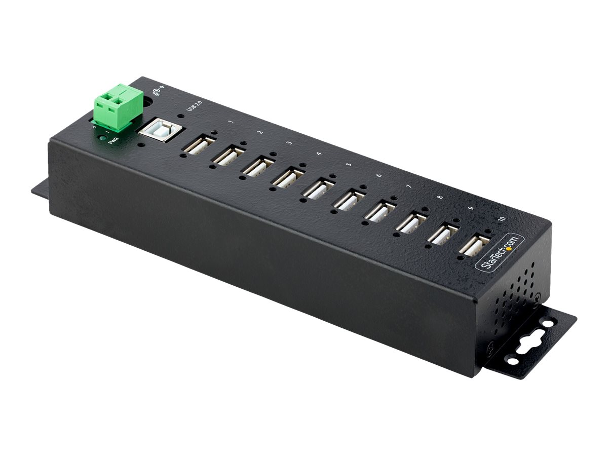 StarTech.com Hub USB 2.0 a 10 porte - hub di ricarica robusto con protezione ESD livello 4 - Moltiplicatore di porte USB-A industriale montabile su DIN/parete/scrivania - splitter/sdoppiatore USB con porte bloccabili - USB 2.0 Type-B - USB 2.0 - 480 Mbit/s - Nero - 56 - porte/sdoppiatore USB-A montabile su DIN/parete/scrivania (USB210AIND-USB-A-HUB)