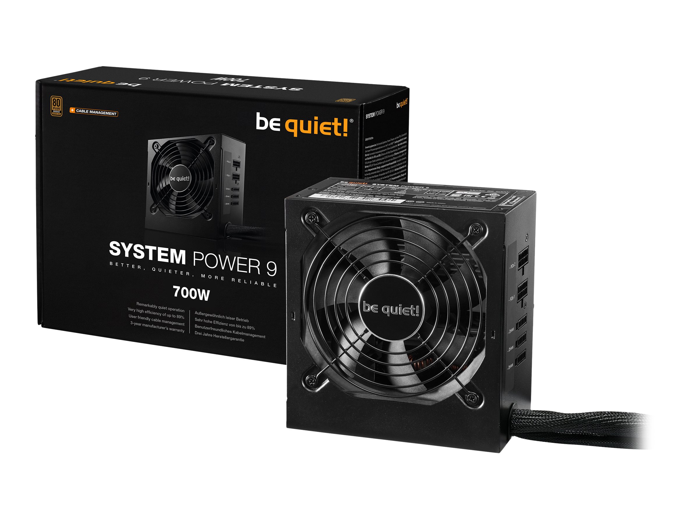 Be Quiet! System Power 9 | 700W CM - 700 W - 200 - 240 V - 50 Hz - 6 A - Attivo - 130 W - ATX 2.51 - 200-240 VAC - 6 A - 120mm fan
