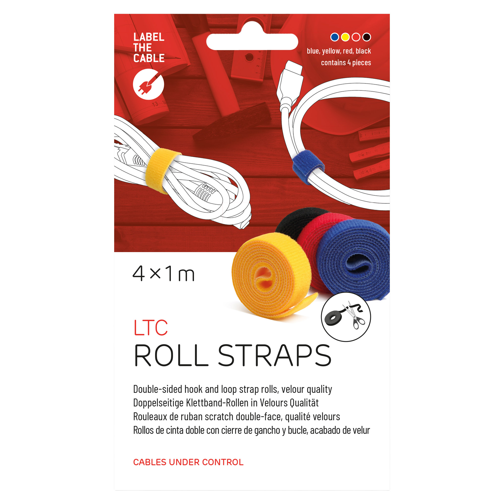 Label-the-cable ROLLS - Velcro - Nero - Blu - Rosso - Giallo - 1000 mm - 16 mm - 4 pz