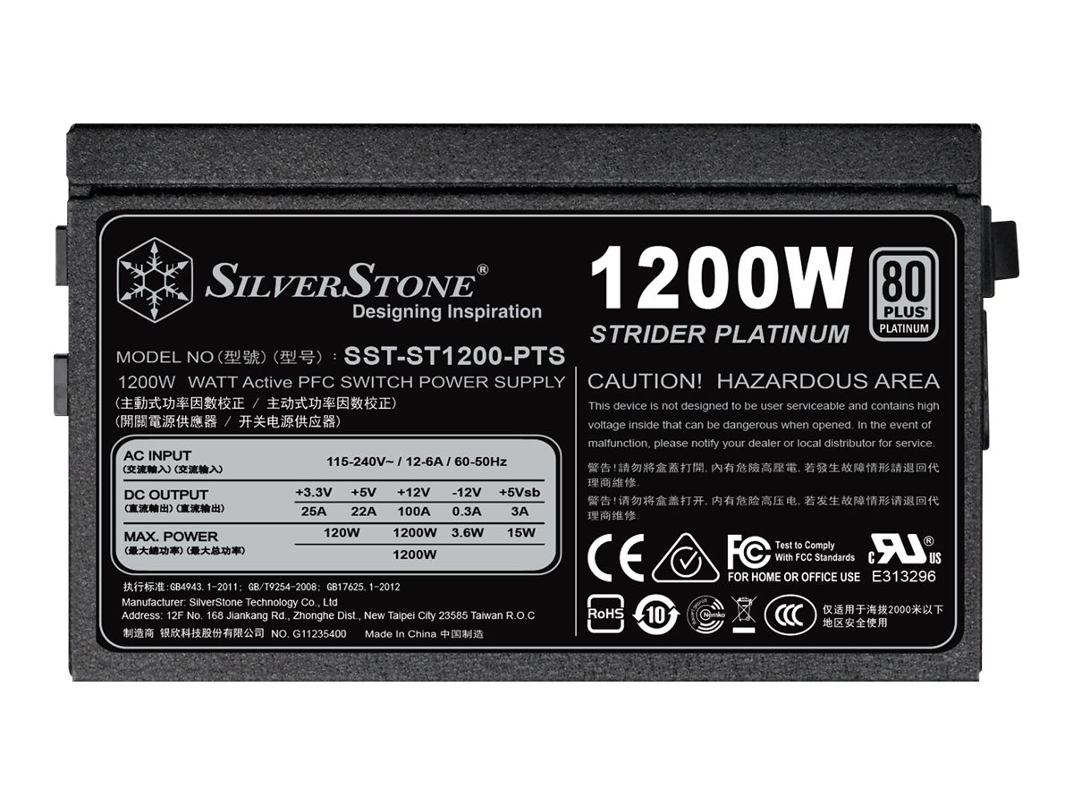 SilverStone ST1200-PTS - 1200 W - 100 - 264 V - 47 - 63 Hz - Attivo - 120 W - 1200 W - 100V~264V - 47-63 Hz - Active PFC - ATX - 120 mm - Black